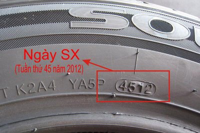 Thông tin về ngày sản xuất lốp được xác định theo số tuần trong năm. Ví dụ, trên lốp xe ghi con số 4512 có nghĩa lốp xe được sản xuất vào tuần thứ 45 vào năm 2012, hết hạn vào khoảng năm 2017.